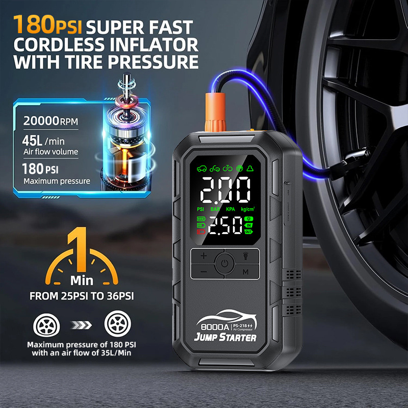 - פונקציות: התנעה, קומפרסור, תאורה, טעינת USB